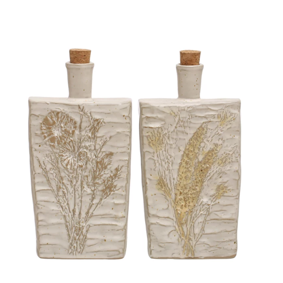 Embossed Stoneware Bottle w/Cork Stopper CLOSE-OUT