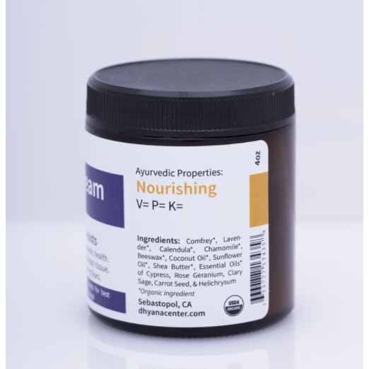 Organic Ingredients : Comfrey, Lavender, Calendula, Chamomile, Beeswax, Coconut Oil, Sunflower oil, Shea Butter, Essential oils of Cypress, Rose Geranium, Clary Sage, Carrot, Seed, Helichrysum